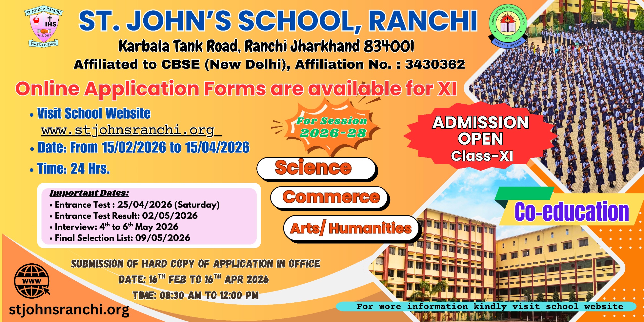 Result: Selected List 2026-27 (NUR/KG/PREP): https://app.schoolcanvas.com/Admission/St.John'sSchoolRanchi